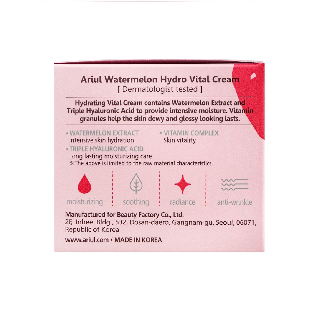 Ariul Watermelon Hydro Vital Cream is a multidimensional, lightweight face cream that helps prevent problems caused by dryness or the overheating of the skin. This moisturizer for the face contains watermelon as its main ingredient and helps brighten, moisturize and plump the skin.
